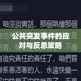 公共突发事件是我们必须面对的挑战,我们需要从应对和反思中吸取经验,加强预警和预防,提高应急响应能力,反思社会管理制度,强化公众参与度,坚持可持续发展理念,只有这样,我们才能更好地应对公共突发事件,保障公众的生命财产安全,促进社会的和谐稳定。