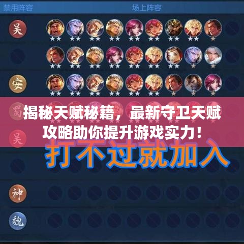 在热门游戏中,每个角色都有其独特的天赋系统等待玩家发掘,本文将为你详细介绍关于“26号守卫天赋”的最新攻略,助你提升游戏实力,成为顶尖玩家。