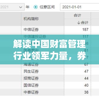 随着中国经济的持续增长,财富管理市场日益壮大,券商基金作为其中的重要一环,发挥着越来越重要的作用,本文将介绍券商基金排名前十名的公司,这些公司在资产管理规模、投资收益、客户服务等方面均表现出色,是中国财富管理行业的领军力量。