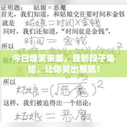 生活中的乐趣就在这些点滴之间,无论是网络热门还是日常趣事,都能给我们带来欢乐,希望这些最新段子能让你今日一笑,快乐每一天,让我们共同传递这份快乐,让生活充满笑声和阳光,如果你还有其他有趣的段子或者笑点,不妨分享出来,让我们一起开怀大笑吧!愿你在接下来的日子里,笑口常开,好运连连!