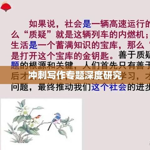 在当今社会,写作已成为一项至关重要的技能,无论是在学术研究、职场竞争还是日常生活中,良好的写作能力都是取得成功的关键,冲刺写作专题研究应运而生,旨在帮助人们提高写作水平,满足各种写作需求,本文将围绕冲刺写作的内涵、方法及应用领域展开研究,以期为提升大众写作能力提供参考。