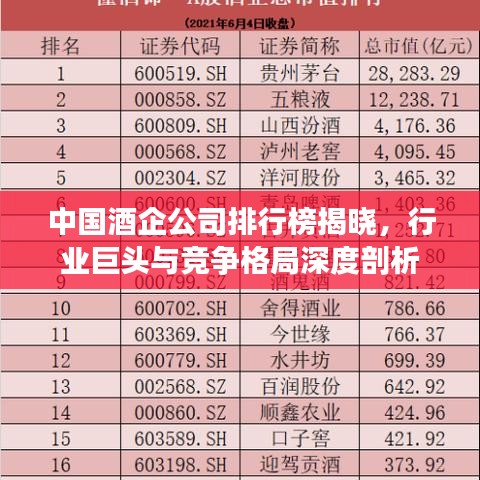 随着消费市场的繁荣,酒企公司在中国经济中扮演着重要角色,本文将探讨中国酒企公司的排名及其背后的竞争格局,从白酒到啤酒,从老牌企业到新晋势力,让我们一探究竟。