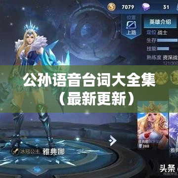随着游戏的发展与普及,角色台词、语音包等成为了游戏中不可或缺的一部分,公孙这一角色在游戏中的表现备受关注,其独特的语音台词更是让人印象深刻,本文将为大家带来公孙语音台词大全集最新的相关内容。