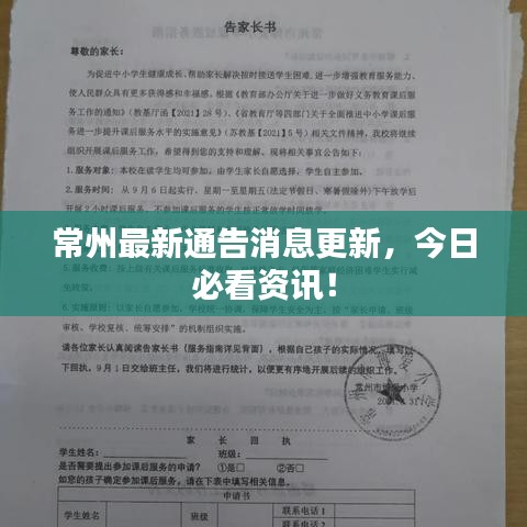 常州今日通告最新消息涵盖了疫情防控、交通建设、教育政策和文化活动等多个方面,充分展示了常州的发展动态和成果,作为一座充满活力和魅力的城市,常州将继续致力于推动各项事业发展,为市民创造更美好的生活环境。